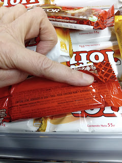 Al pie agrego las fotos de galletitas, alfajores, chocolatines con el listado de los componentes. Es espeluznante. Un dato adicional: algunos artículos esconden en un doblez termosellado la descripción del producto. Cumplen con la ley (el envoltorio incluye lo exigido) pero lo ocultan de la vista del comprador. Fea la actitud.