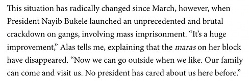 Indeed, and you have no further to look than Presidente Zod versus the human-rights groups to see what I meant. (Legal question: is Bukele eligible to be Presidente of San Francisco? “Fierro en guerra, oro en paz,” indeed. Venga al norte—we have such sights to show you…)