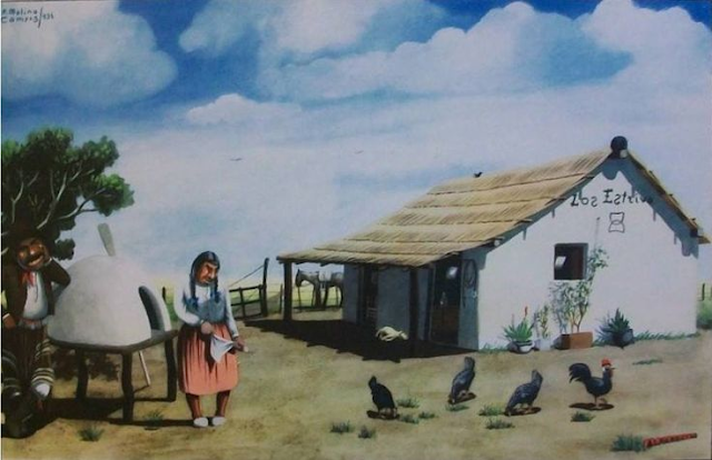 | "El lanzamiento...", serie escuela, pintura de Claudio Gallina. |