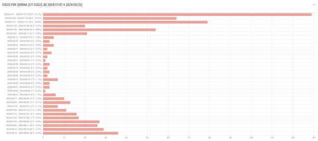 | Figura 5: Evolución semanal de los incendios en el estado de São Paulo durante el año 2024 (fuente: BDQueimadas) |